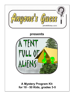 This mystery has 6 Suspects and 2 Evidence Scenes (at the Campfire and in the Boys' Tent.) The kit includes 11 items of Evidence, plus the Crime Notebook, Badges/Tickets, Publicity Materials and Complete Instructions.