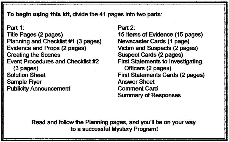 Here are some examples of what is included in the Teen Mystery Program Kit